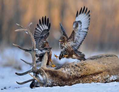 Im Winter beziehen wir die Ansitzhütten in der Morgendämmerung. Wir bleiben den ganzen Tag in den Hütten. Lunchpakete und genügend warmen Kaffee und Tee haben wir dabei. Wenn das Licht zum späten Nachmittag hin abnimmt, werden wir abgeholt und in unser Quartier gebracht. Abends fahren wir gemeinsam in ein Restaurant zum Essen.